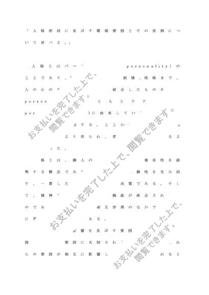 「人格形成に及ぼす環境要因とその役割について述べよ。」