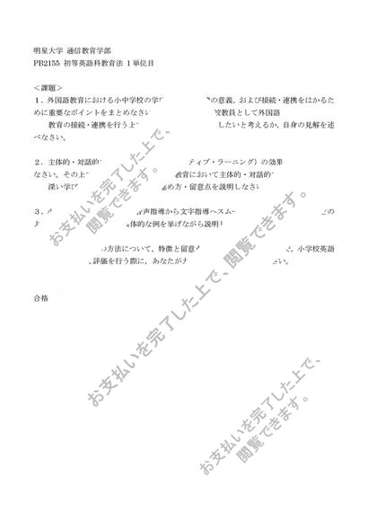 <明星大学通信>2022年度 PB2155 初等英語科教育法 1単位目