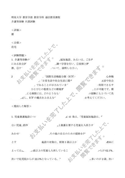 <明星大学通信>2022年度 介護等体験 代替試験 『優』