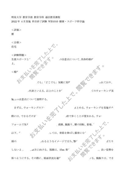 <明星大学通信>2022年 4月実施 科目終了試験 WB1010 健康・スポーツ科学論『優』