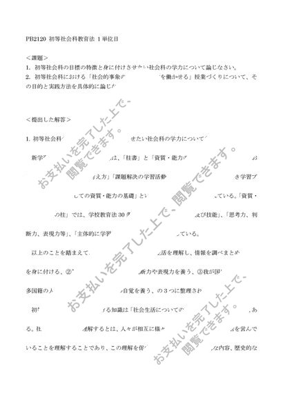 <明星大学通信>2022年度 PB2120 初等社会科教育法 1単位目