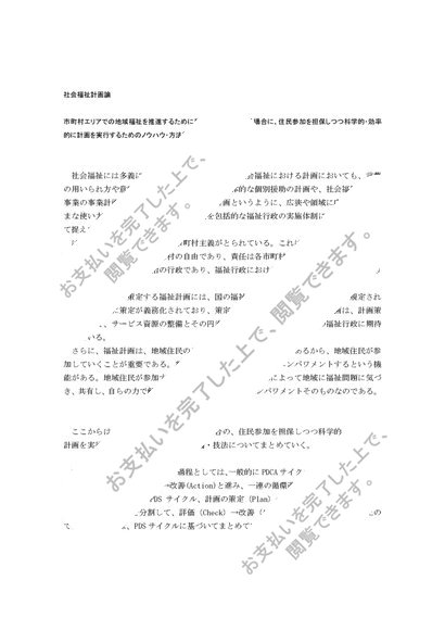 市町村エリアでの地域福祉を推進するための福祉計画を実行する方法論や技法についてまとめよ。