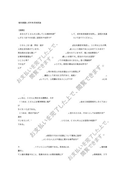 精神科病院のPSWであるとして、成年後見制度を利用し、退院の見通しがたつまでの支援を考えよ