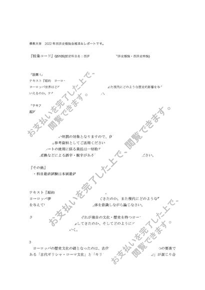 佛教大学 2022年合格済みレポート 西洋史概論 設題1