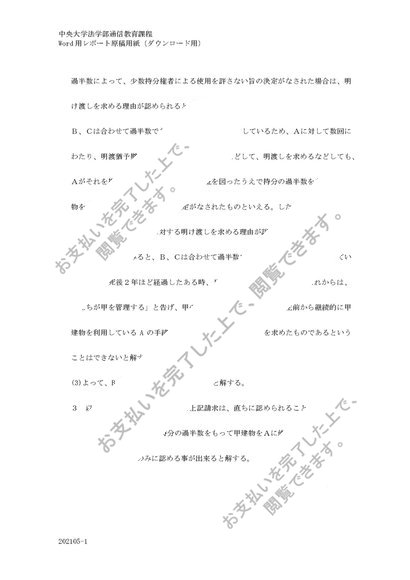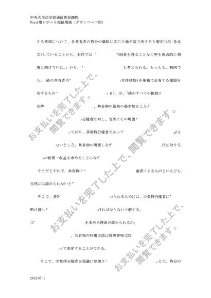 中央大学通信教育部 2021年第1課題 D評価 民法2 物権