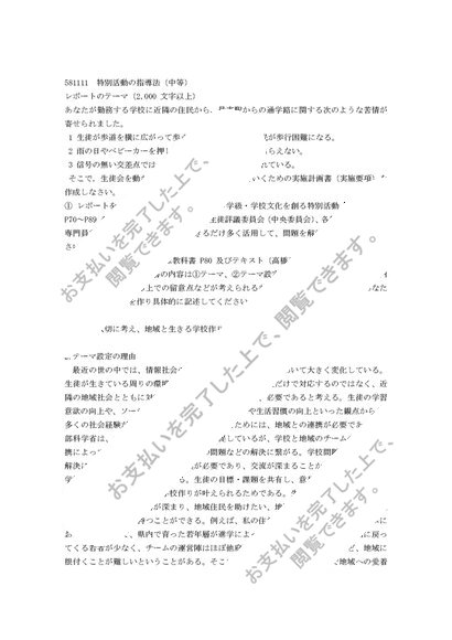 特別活動の指導法(中等)レポート 評価A 星槎大学
