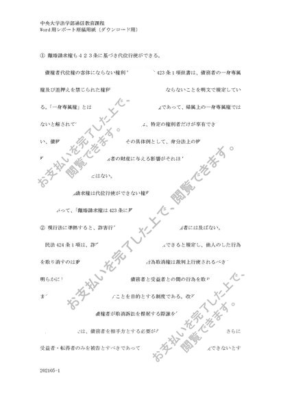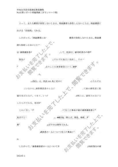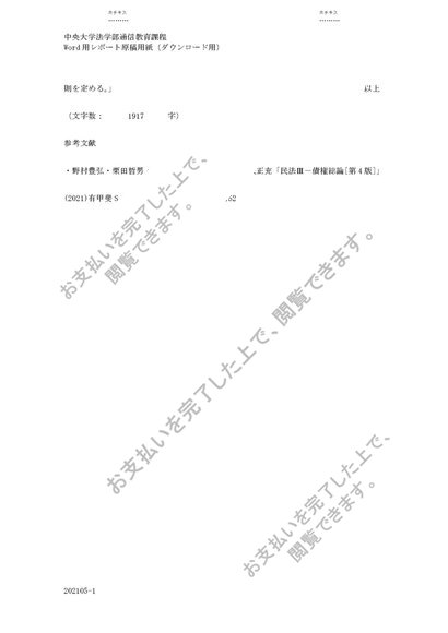 中央大学通信教育 民法3 第2課題2021年 C評価