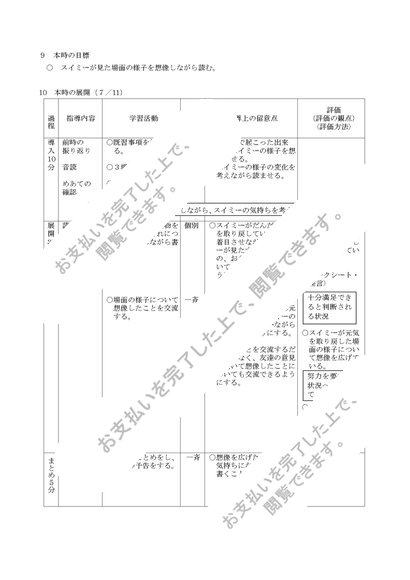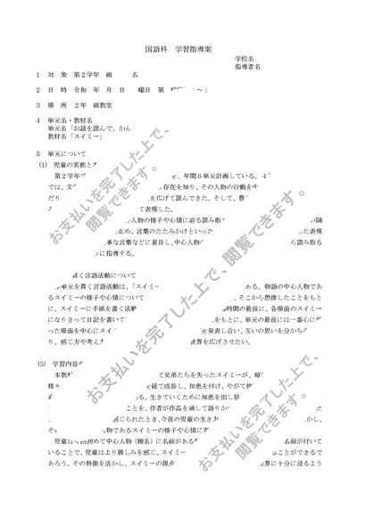 小学校 第2学年 国語科学習指導案 スイミー