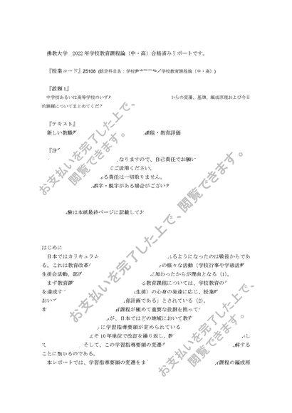 2022年 合格済みレポート 学校教育課程論