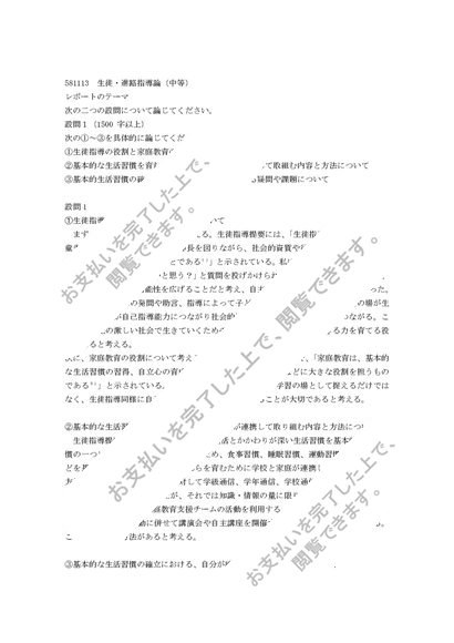 生徒・進路指導論(中等)レポート 評価S 星槎大学