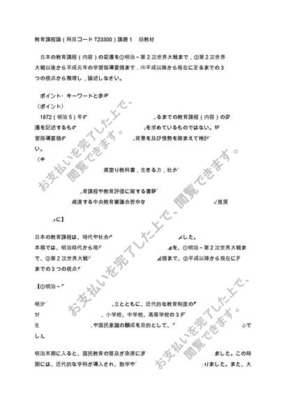 【日大通信・旧教材】教育課程論 2023年~2025年(科目コードT23300)課題1