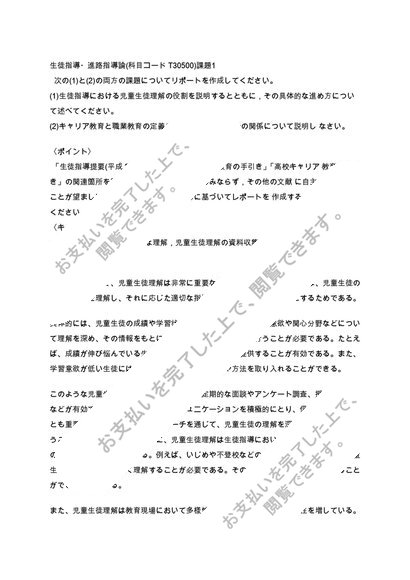 【日大通信】生徒指導・進路指導論 2023年~2025年(科目コードT30500)課題1