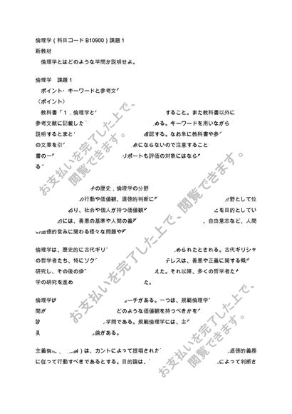 【日大通信】倫理学 新教材 2023年~2025年(科目コードB10900)課題1