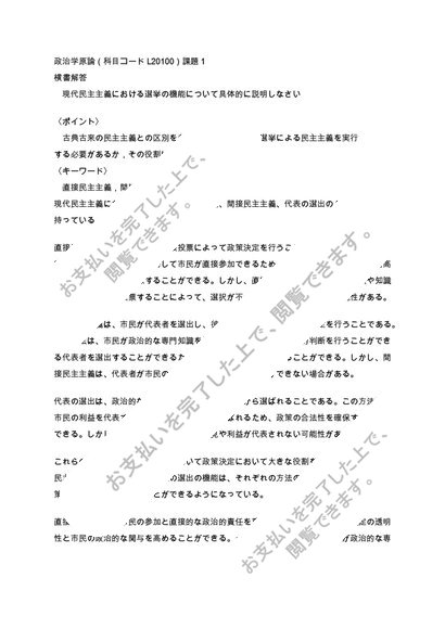 【日大通信】政治学原論 2023年~2025年(科目コードL20100)課題1