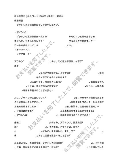 【日大通信】政治思想史 2023年~2025年(科目コードL30300)課題1 新教材