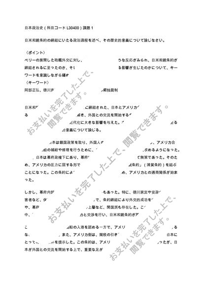 【日大通信】日本政治史 2023年~2025年(科目コードL30400)課題1