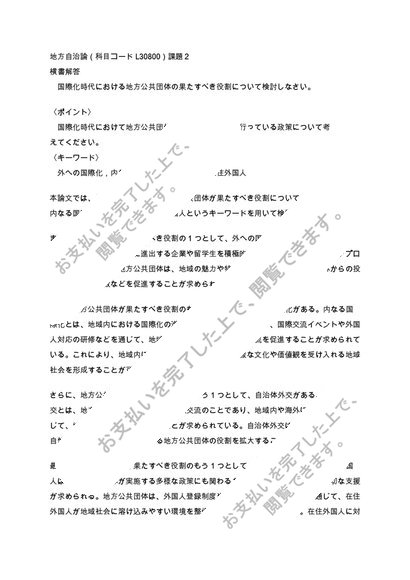【日大通信】地方自治論 2023年~2025年(科目コードL30800)課題2