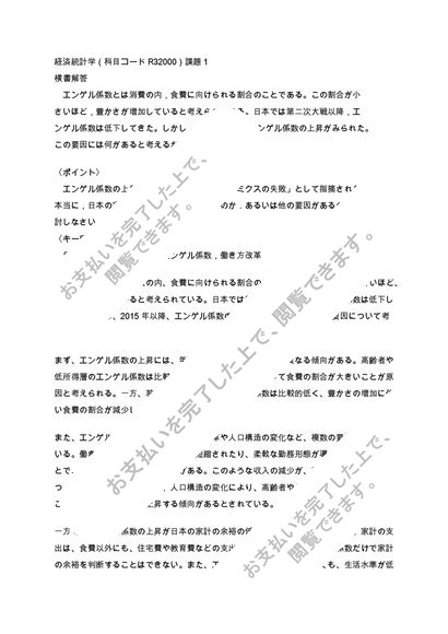 【日大通信】経済統計学 2023年~2025年(科目コードR32000)課題1