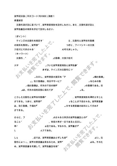 【日大通信】貨幣経済論 2023年~2025年(科目コードR31900)課題1