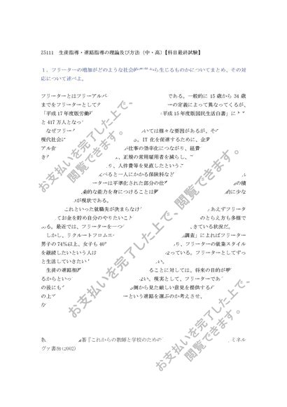 【佛教大学】Z5111 生徒指導・進路指導の理論及び方法(中・高)【科目最終試験】