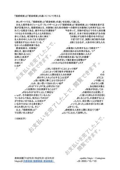 「類感呪術」と「感染呪術」の違いについて考える