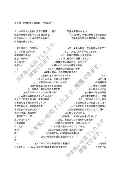 社会科 PB1020 2単位目 合格レポート