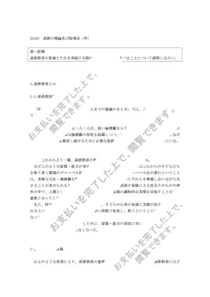 Z5107道徳の理論及び指導法(中)【評価:受理】