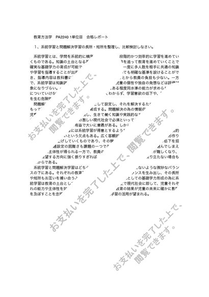 教育方法学 PA2240 1単位目 合格レポート
