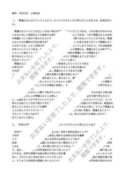 理科 PB2020 2単位目 合格レポート HAPPYCAMPUS menu