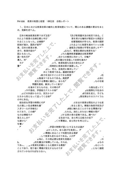PA1030 教育の制度と経営 1単位目 合格レポート