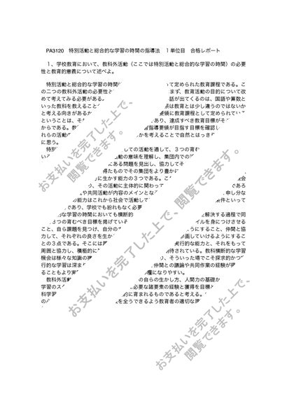 PA3120 特別活動と総合的な学習の時間の指導法 1単位目 合格レポート