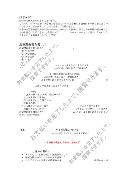 【入学希望理由書】日本大学理工学部まちづくり工学科【総合型選抜】