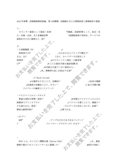 八洲学園大学<図書館情報技術論 第1回課題>2022年春期