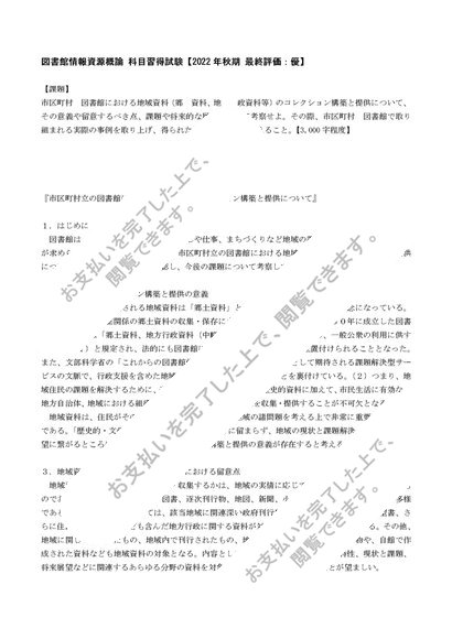 八洲学園大学 図書館情報資源概論 科目習得試験【2022年秋期 最終評価:優】