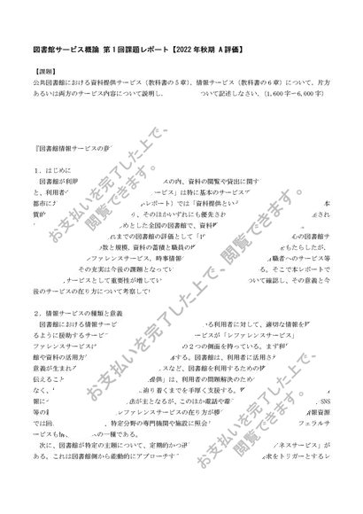 八洲学園大学 図書館サービス概論 第1回【2022年秋期 A評価】