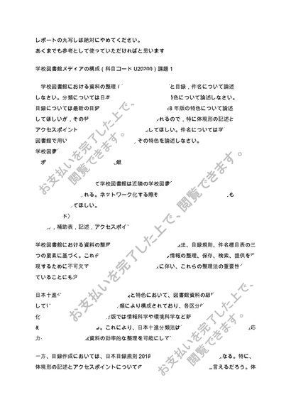 【日大通信】別回答版 学校図書館メディアの構成 2023年~2025年(科目コードU20200)課題1