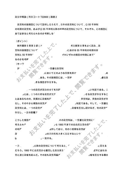 【日大通信】別回答版 政治学概論 2023年~2025年(科目コードT22800)課題2