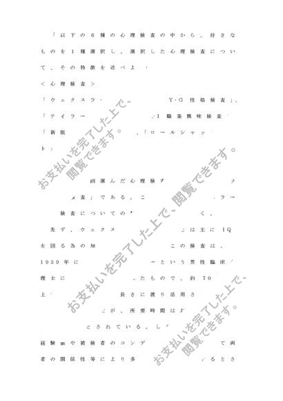 【A評価】心理的アセスメントレポート(設題1)