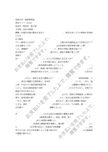 【法政通信】法政大学通信教育 01118 東洋史 第2回