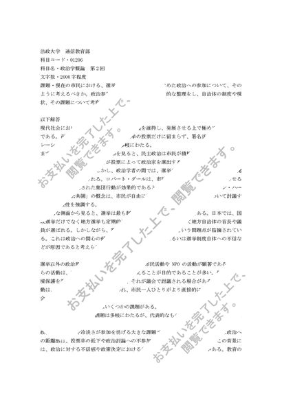 【法政通信】法政大学通信教育 01206 政治学概論 第2回