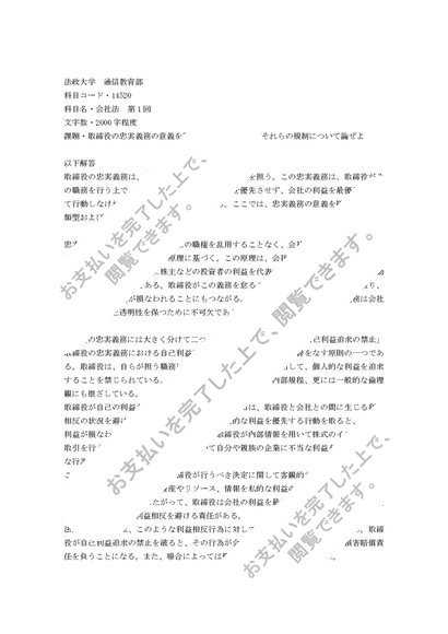 【法政通信】法政大学通信教育 14520 会社法 第1回