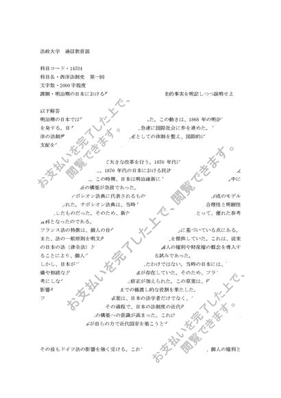 【法政通信】法政大学通信教育 14534 西洋法制史 第1回