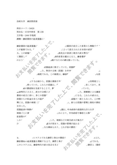 【法政通信】法政大学通信教育 34628 日本中世史 第1回