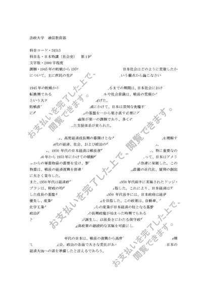【法政通信】法政大学通信教育 34515 日本史特講(社会史) 第1回