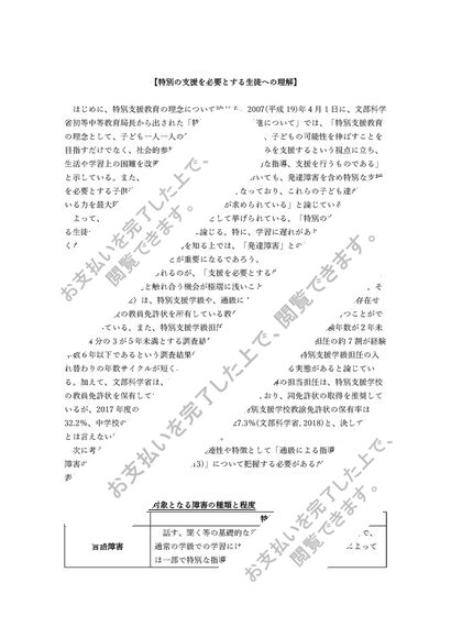 特別の支援を必要とする幼児・生徒への理解 【中間試験】評価A