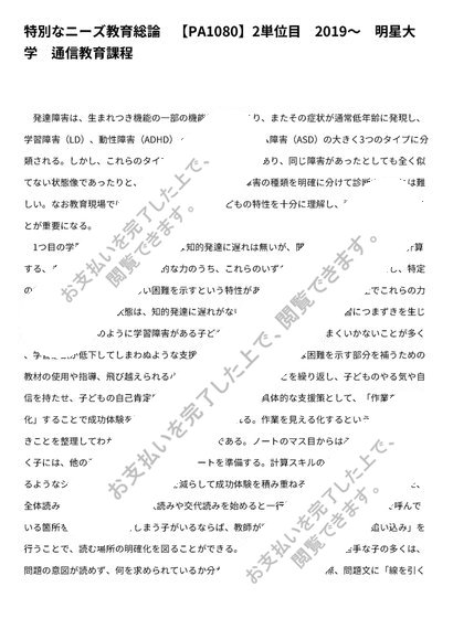 特別なニーズ教育総論 【PA1080】2単位目 2019〜 明星大学 通信教育課程