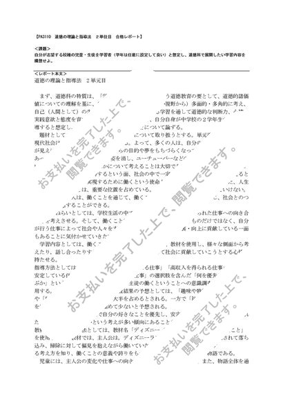 PA3110 道徳の理論と指導法 2単位目 明星大学 合格レポート