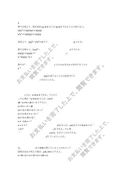 代数学1【1単位目】PF2010 2014〜 明星大学 通信教育課程 合格レポート