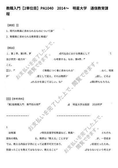 教職入門【2単位目】PA1040 2014〜 明星大学 通信教育課程