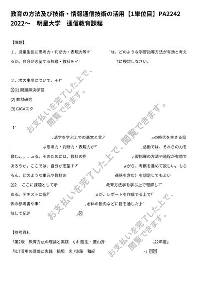 教育の方法及び技術・情報通信技術の活用【1単位目】PA2242 2022〜 明星大学 通信教育課程